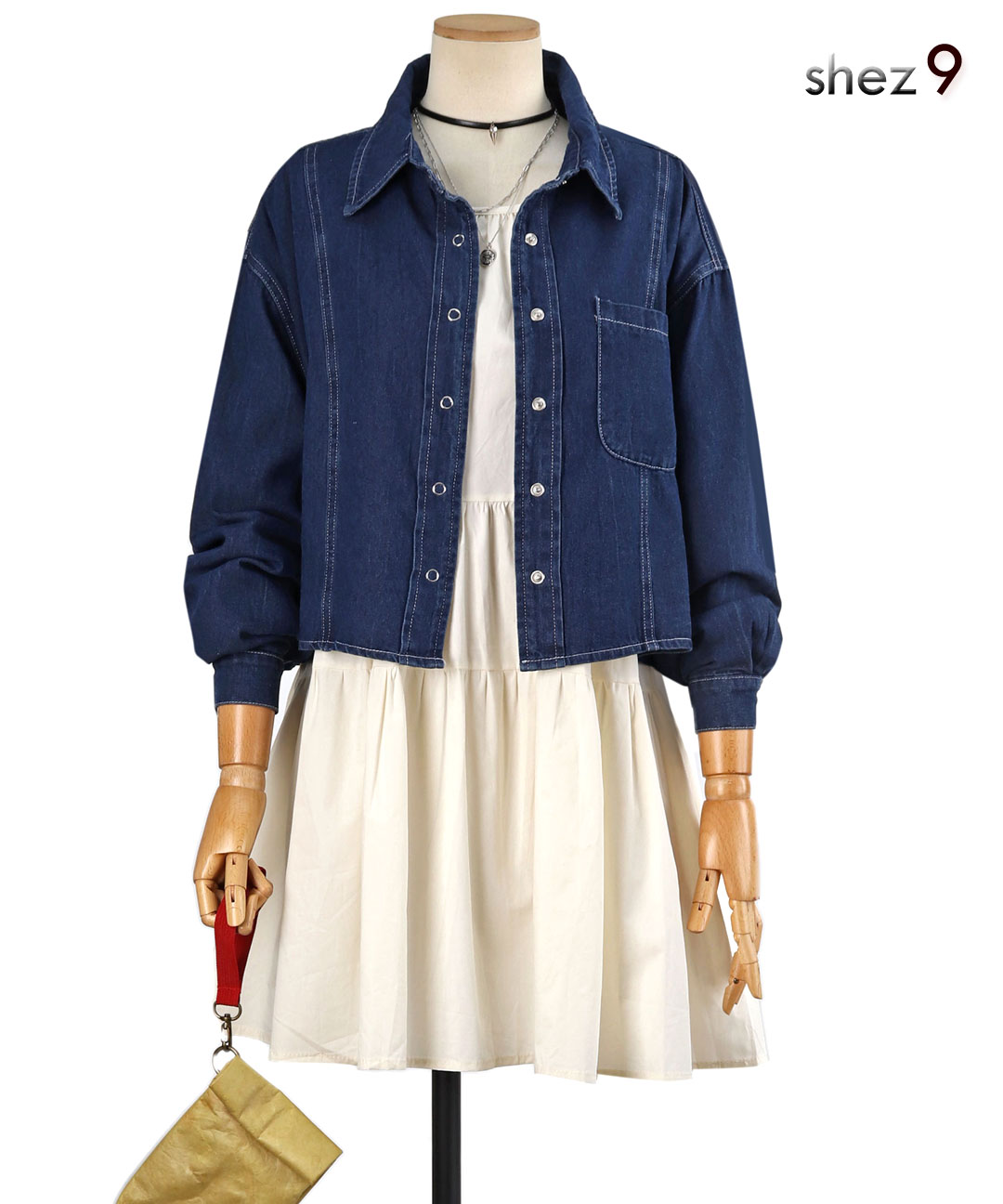 [쉬즈넘버나인]노라 스티치 크롭 청남방