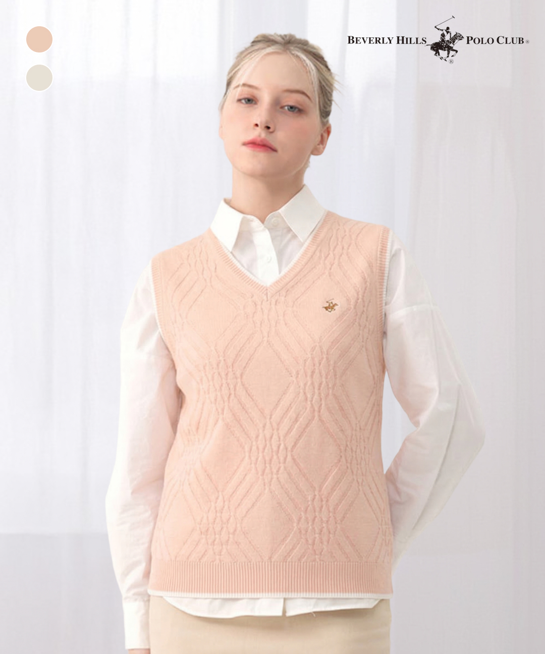 [비버리힐스폴로클럽] 여성 다이아 V넥 니트조끼 2종택1