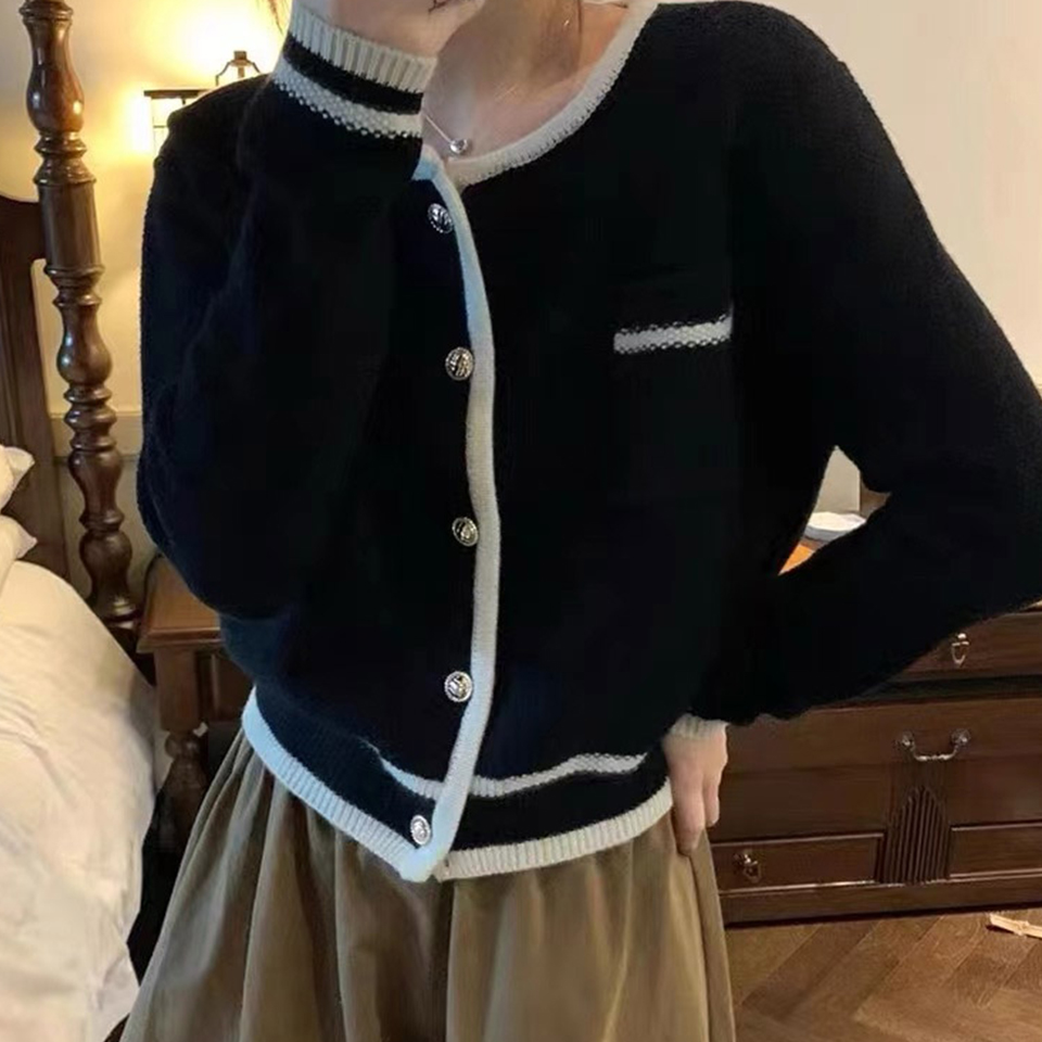 [귈림] 투포켓 논카라 배색 버튼 가디건(GBFKN052P)