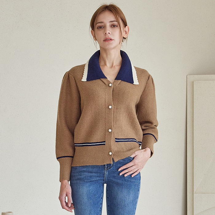 물결카라 진주 버튼 니트 가디건_M2311CD062D