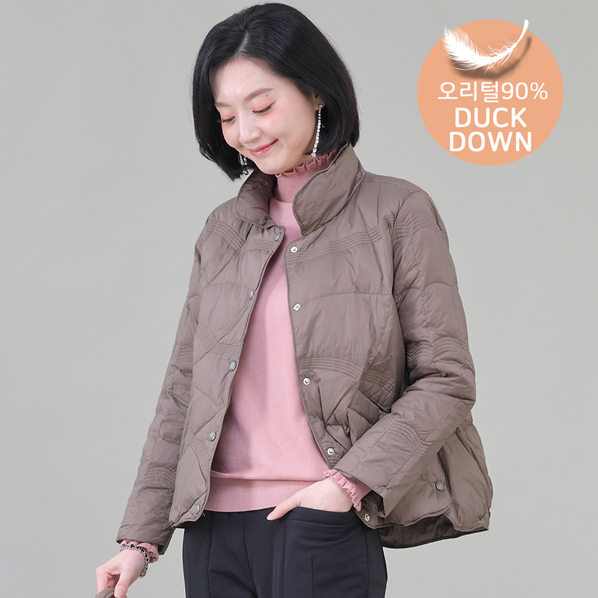 카라 경량 오리털 물결 누빔 똑딱이 여성 봄 가을 초겨울 숏 패딩 점퍼 J11361