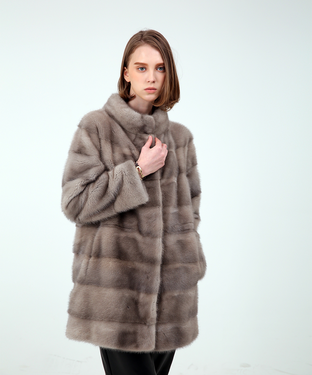 [노블밍크] 역시즌 세일 스탠카라 호리젠탈 프리미엄 천연밍크 코트 P182(한정수량)
