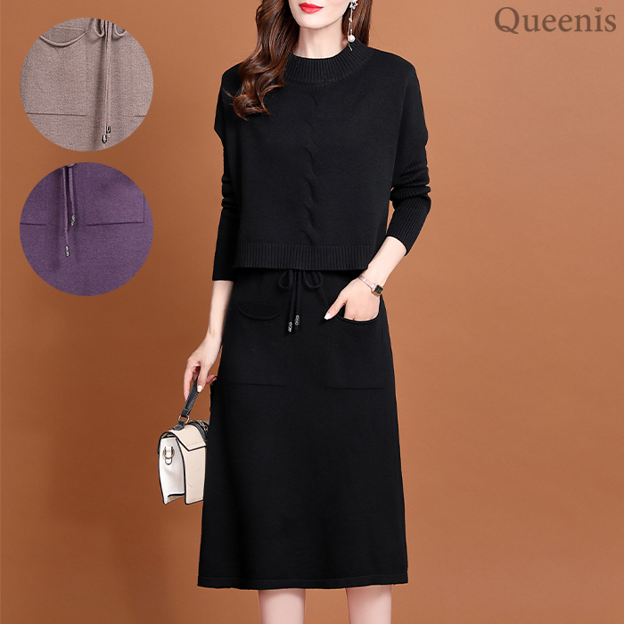 [페이릿] 트나 레이어드 니트 원피스 SET