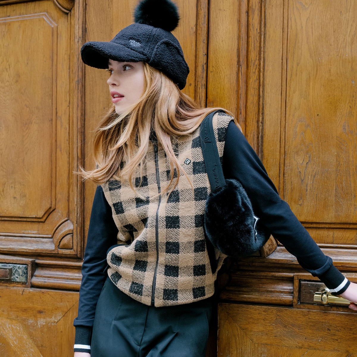 여성 체크 패턴 믹스 구스 다운 베스트 RWSVM8272-509
