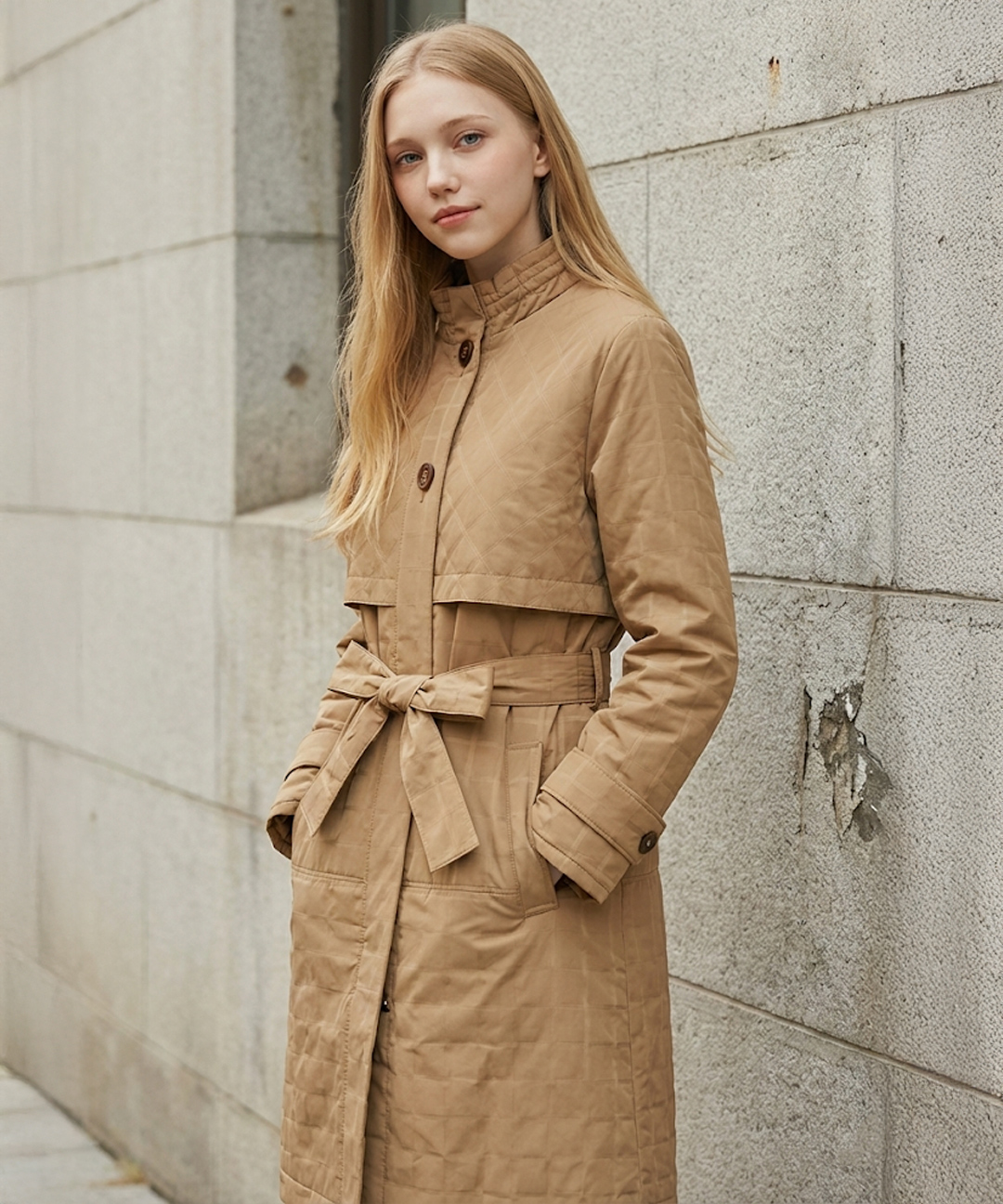 크로커다일레이디 체크패턴 리본 트렌치코트_CLCSCT102