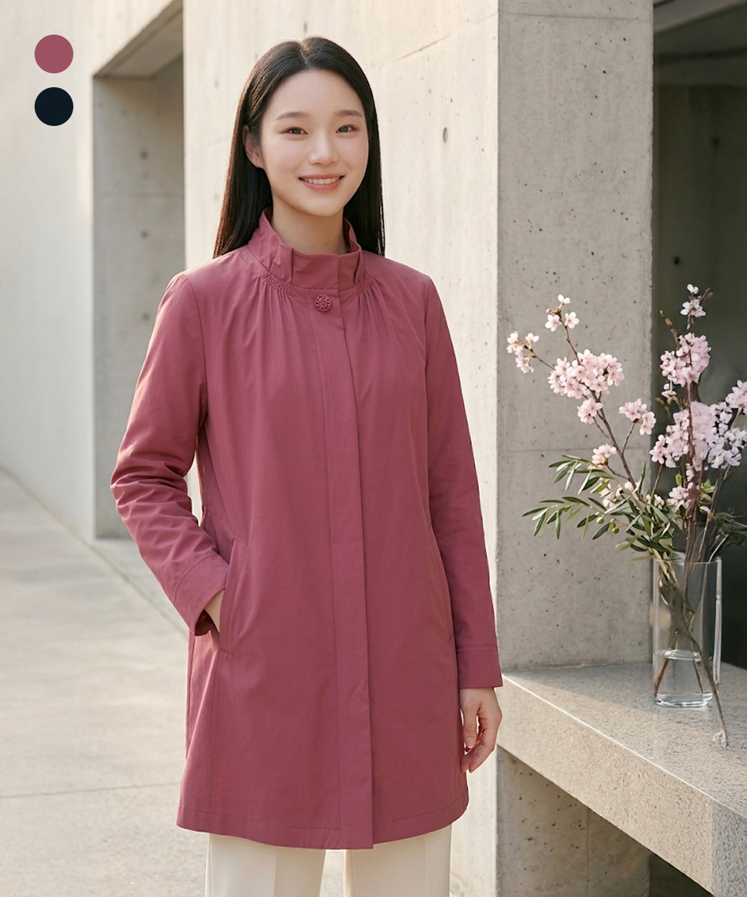 크로커다일레이디 로즈 셔링 하이넥 하프코트 점퍼_CLCSJP102