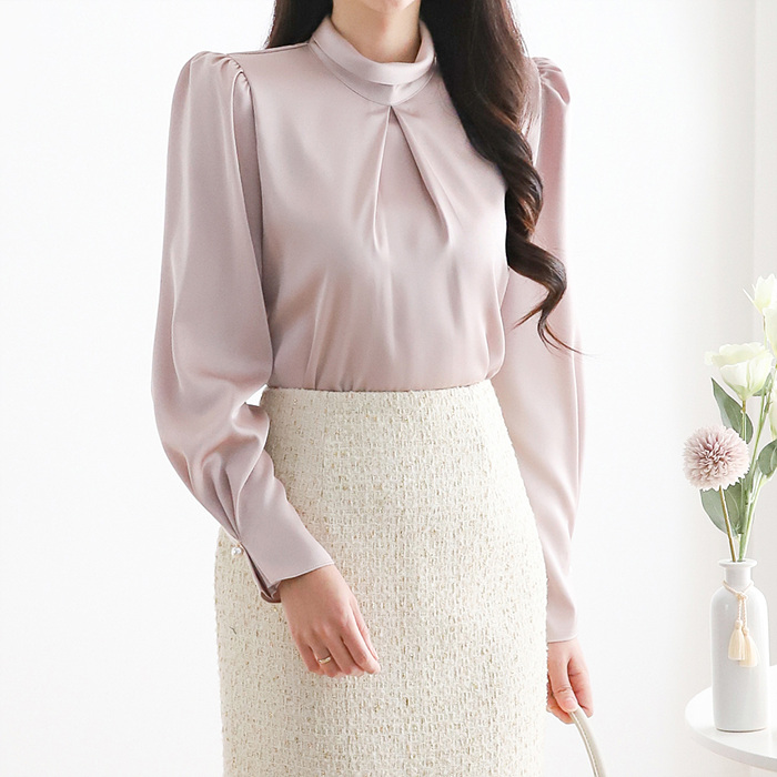 [한정/특가] 롤카라 진주 핀턱소매 블라우스_M2401BL008A