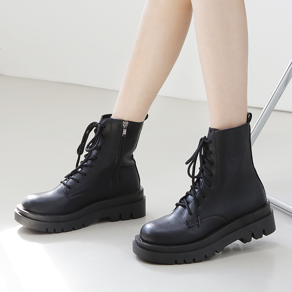 빅사이즈 레이스업 통굽 워커 부츠 (5cm) 로시오