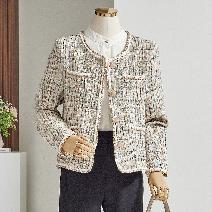 [한정수량] [한정/특가] 트위스트 배색 라인 트위드 자켓_B2402JK008A_M