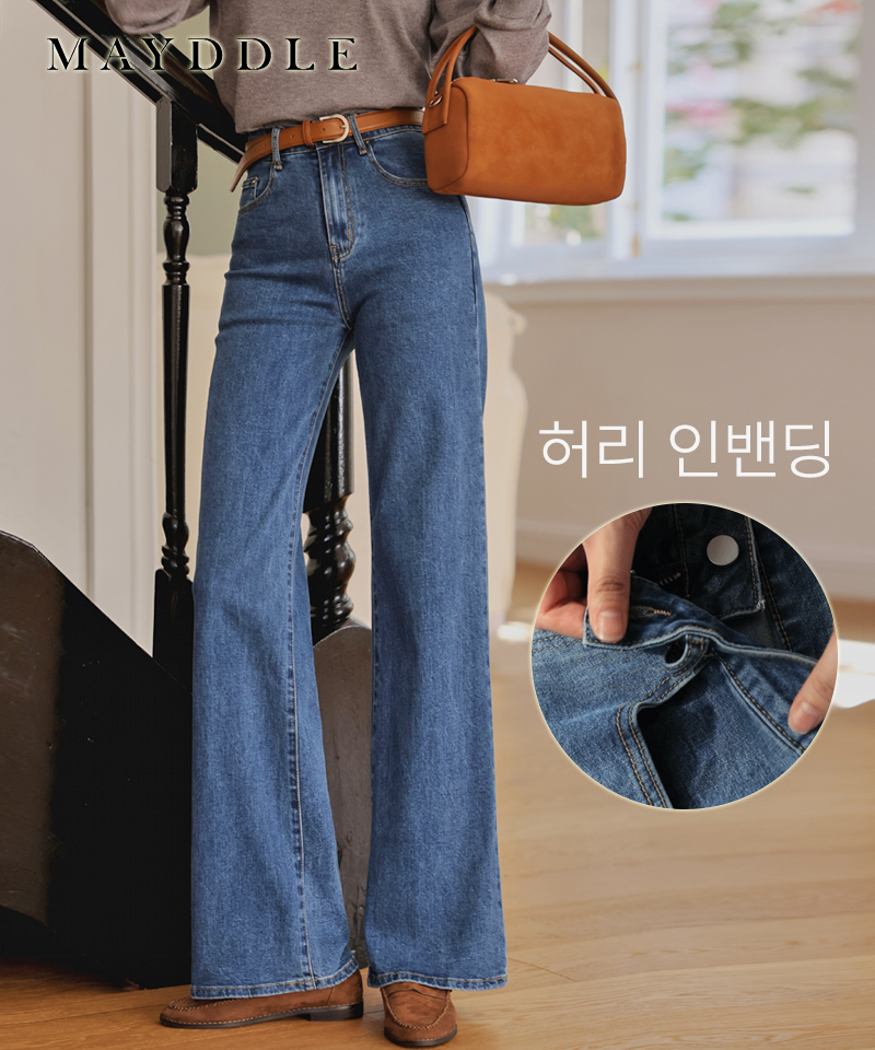 [영상핏][빠른배송]인생핏 스판 와이드 데님팬츠(ver.사계절) / 허리밴딩 텐션 신축성 세미와이드 허리밴딩 사계절 중청 편한 예쁜청바지 데일리룩 나들이 여행룩 봄 가을