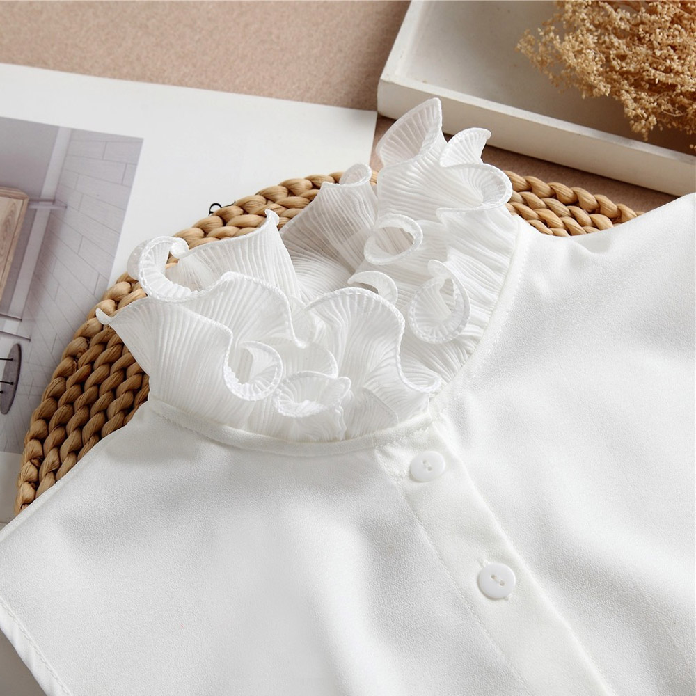 슈드 여성 넥케이프 레이스 블라우스 프릴 페이크카라