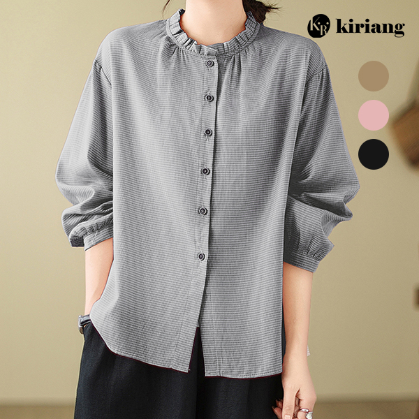 [키리앙] 엘리 프릴넥 체크 블라우스