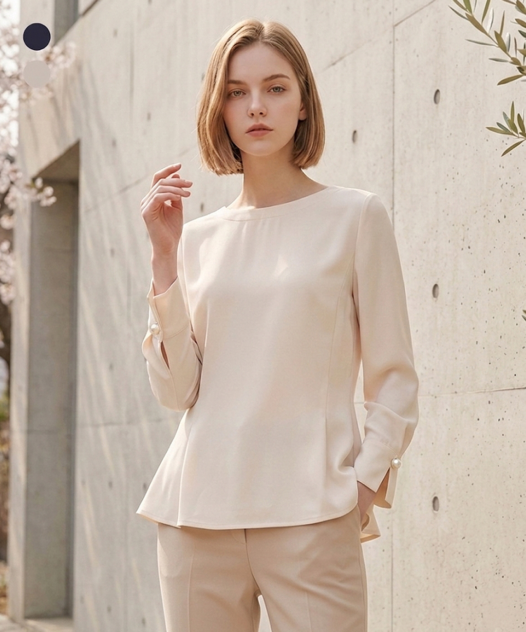 올리비아하슬러 크림 페플럼 라운드넥 블라우스_OHCMBL101