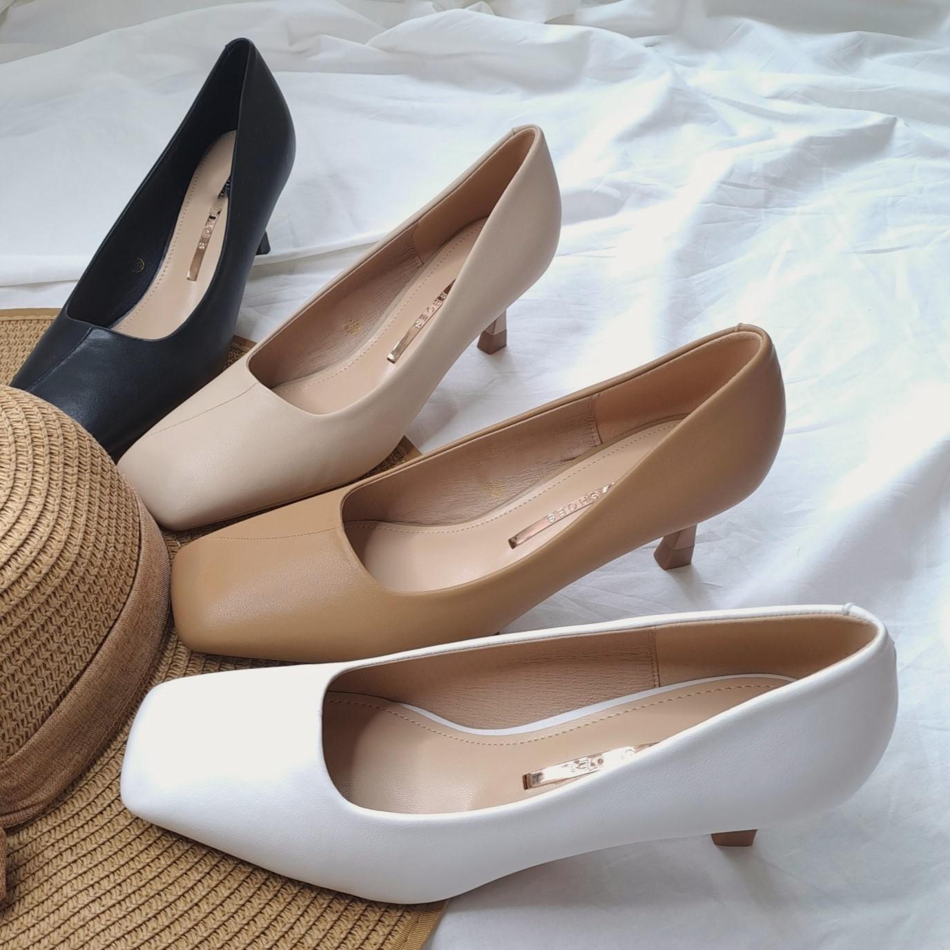 루페 천연 소가죽 스퀘어 토 펌프스 4color