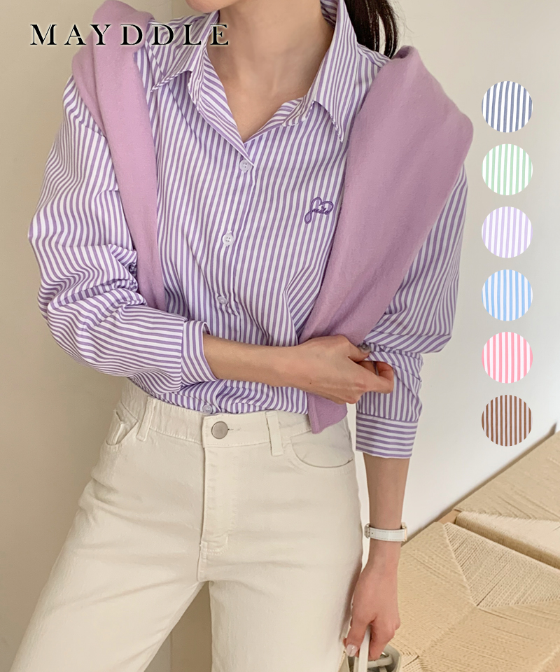 [영상핏]링클프리 러브자수 스트라이프 셔츠 / 힙커버 스판 클래식 줄무늬 긴팔 구김없는 남방 네이비 애플민트 라이트퍼플 라이트블루 핑크 브라운 파스텔 피크닉 여행룩 나들이 봄맞이