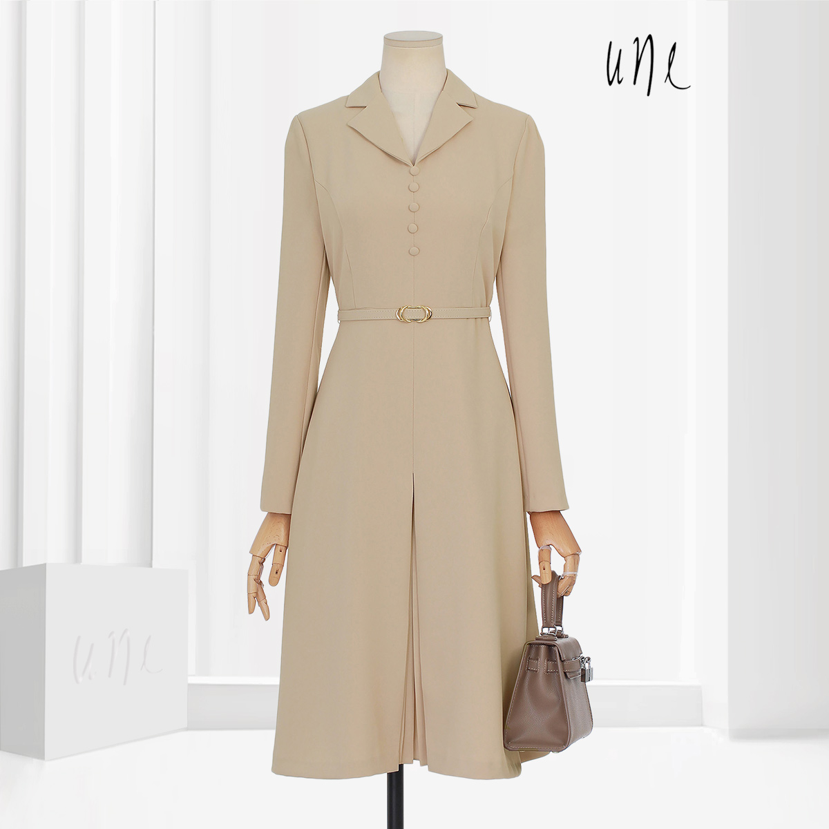 윈(une) [벨트SET]플리츠블록맞주름플레어원피스
