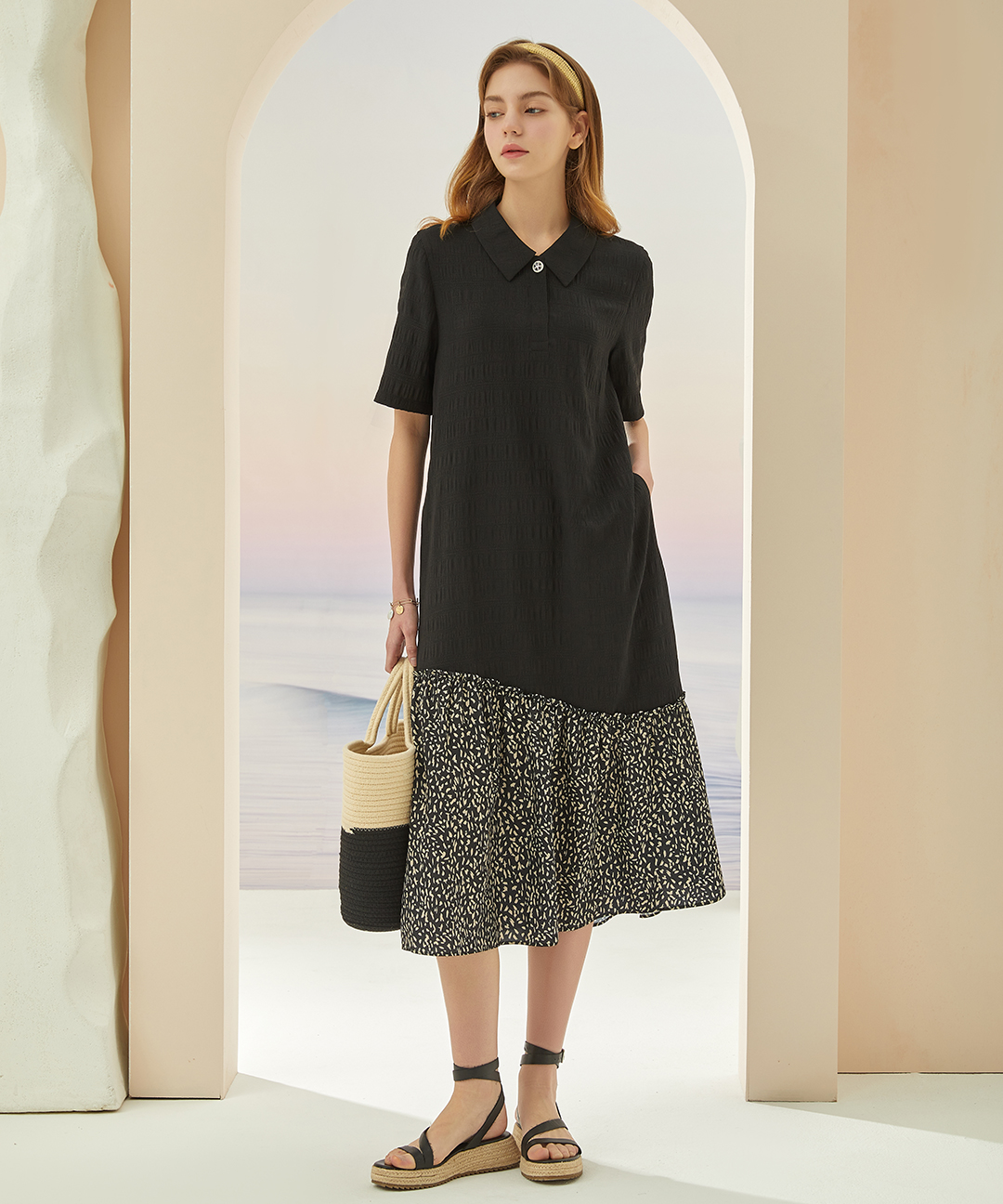 [시즌특가](55~99)크링클 볼륨 쿨 원피스