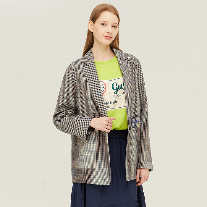 [베네통]자수 체크 자켓_BAJK52431PK