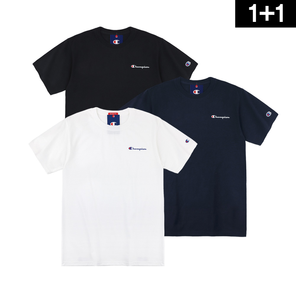 원쁠원 챔피온 클래식 그래픽 스몰로고 크루넥 반팔 티셔츠 2장세트