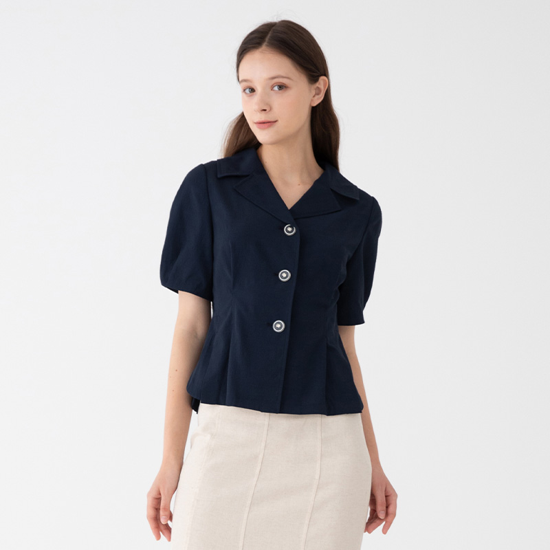 쓰리버튼 핀턱 반팔 블라우스(SZ4SS87)