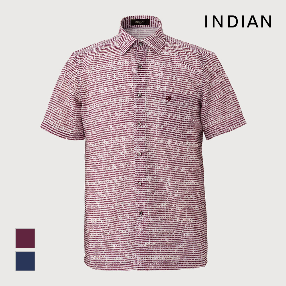 [INDIAN] 변형 프린트 스트라이프 반팔 티셔츠_MITNSXM3201