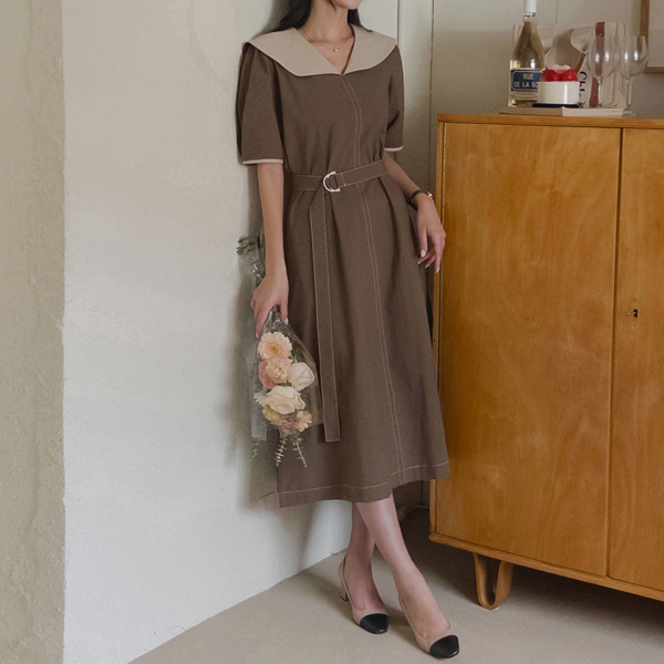 [벨트set] 노아인 카라 린넨 원피스