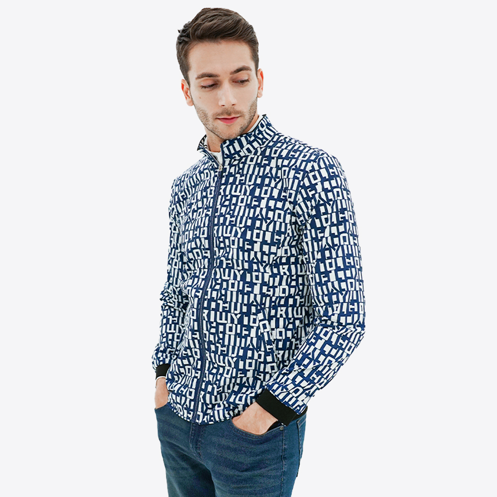 김영주 남성 봄 가을 골프웨어 로고 프린트 스판 바람막이