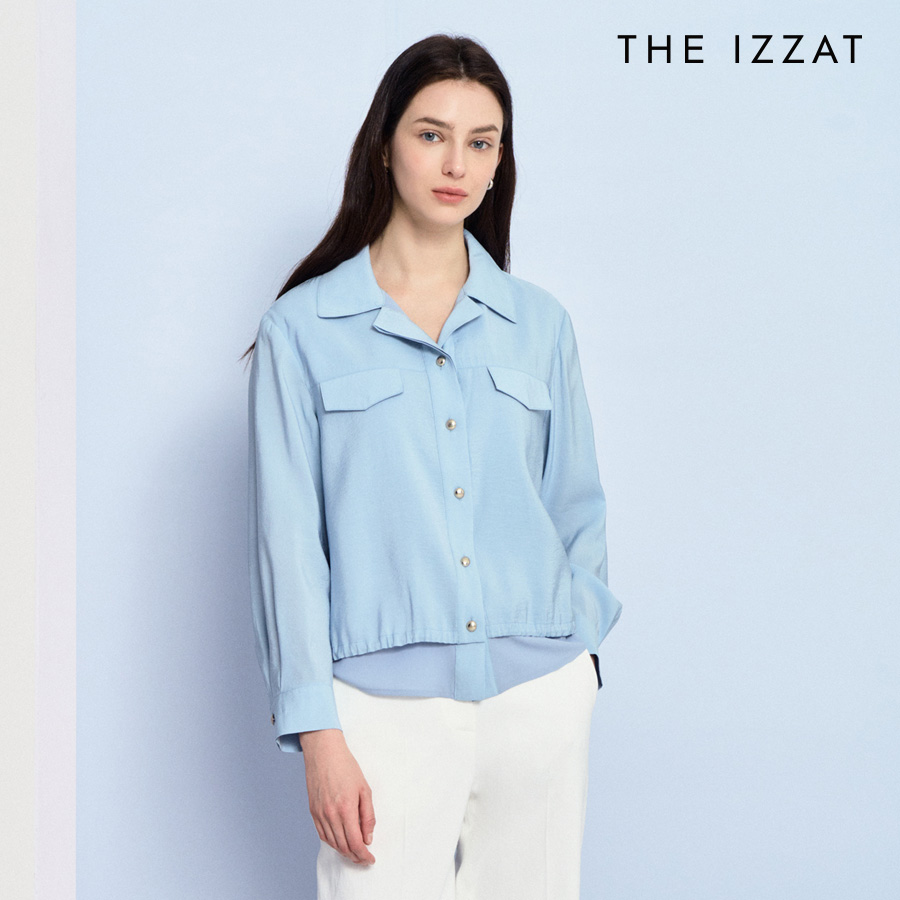 (더아이잗) 스트링 레이어 오픈 칼라 블라우스 IP4A0BL061