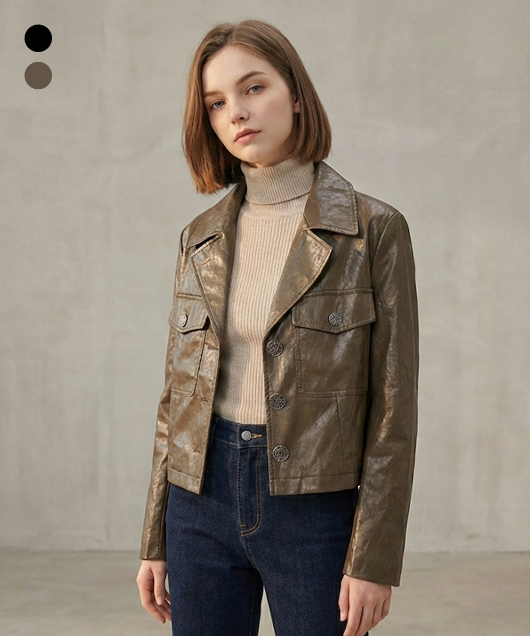 [미센스] 버튼포인트 숏 가죽자켓_MB39LEMD01Z