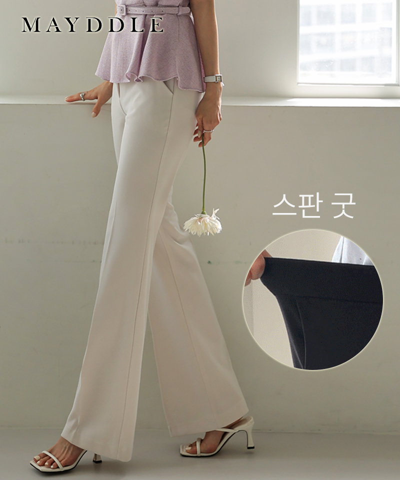 [영상핏]더블유 밴딩스판 여름부츠컷슬랙스 / 쫀득 텐션 신축성 하이웨스트 다리길어보이는바지 격식 모임 하객 출근 직장인 시원한 정장 바지 블랙 아이보리 유니폼바지