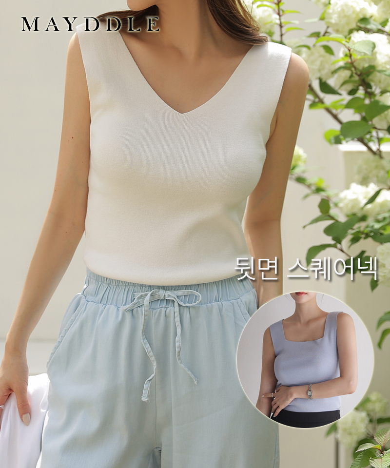 [부분오늘출발] [뒷면스퀘어넥]앞뒤로입는 양면 나시니트 / 민소매 브이넥 스퀘어 이너 레이어드 동남아 해외여행 여행룩 바캉스 여름코디 블랙 브라운 소라 베이지 아이보리 쫀쫀 나시탑 슬리브리스