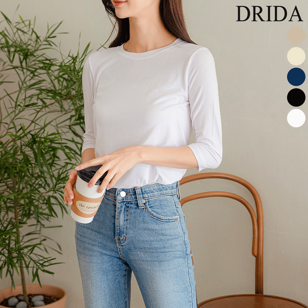 [드리다] 7부 라운드 스판 이너 기본 티셔츠