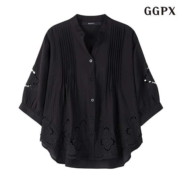 플라워 펀칭 트임넥 루즈핏 핀턱 블라우스 (GOBBA015D)