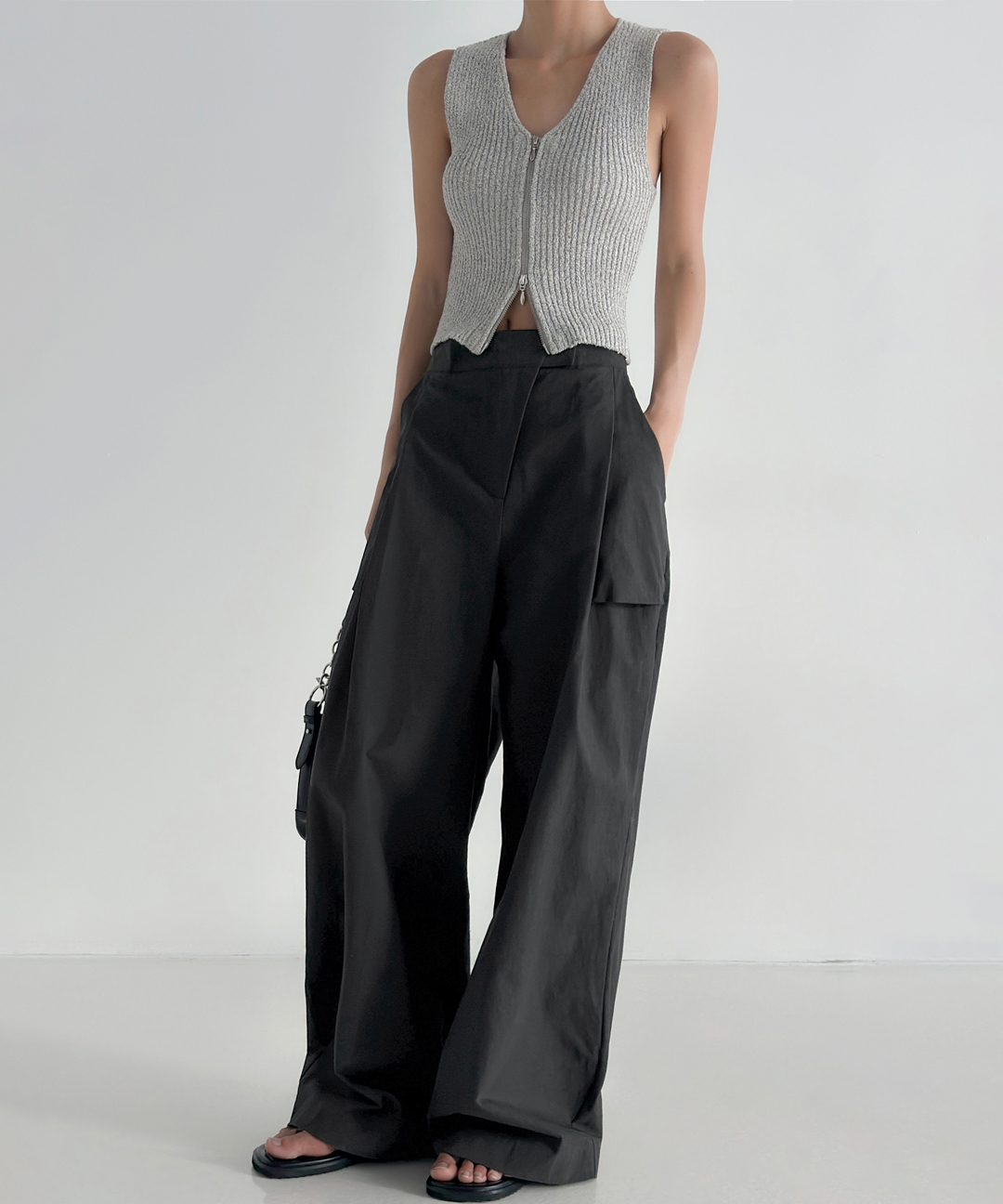 코이 포켓 워싱 뒷밴딩 원핀턱 코튼 와이드 팬츠 (2colors)