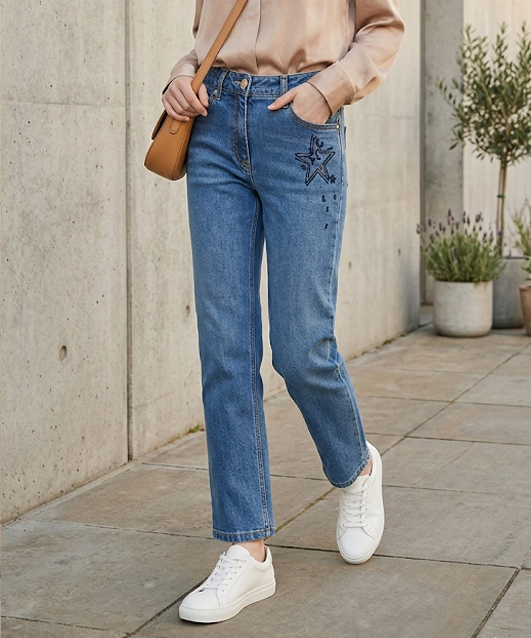 자수 포인트 일자핏 캐주얼 데님팬츠_CLDMDP204