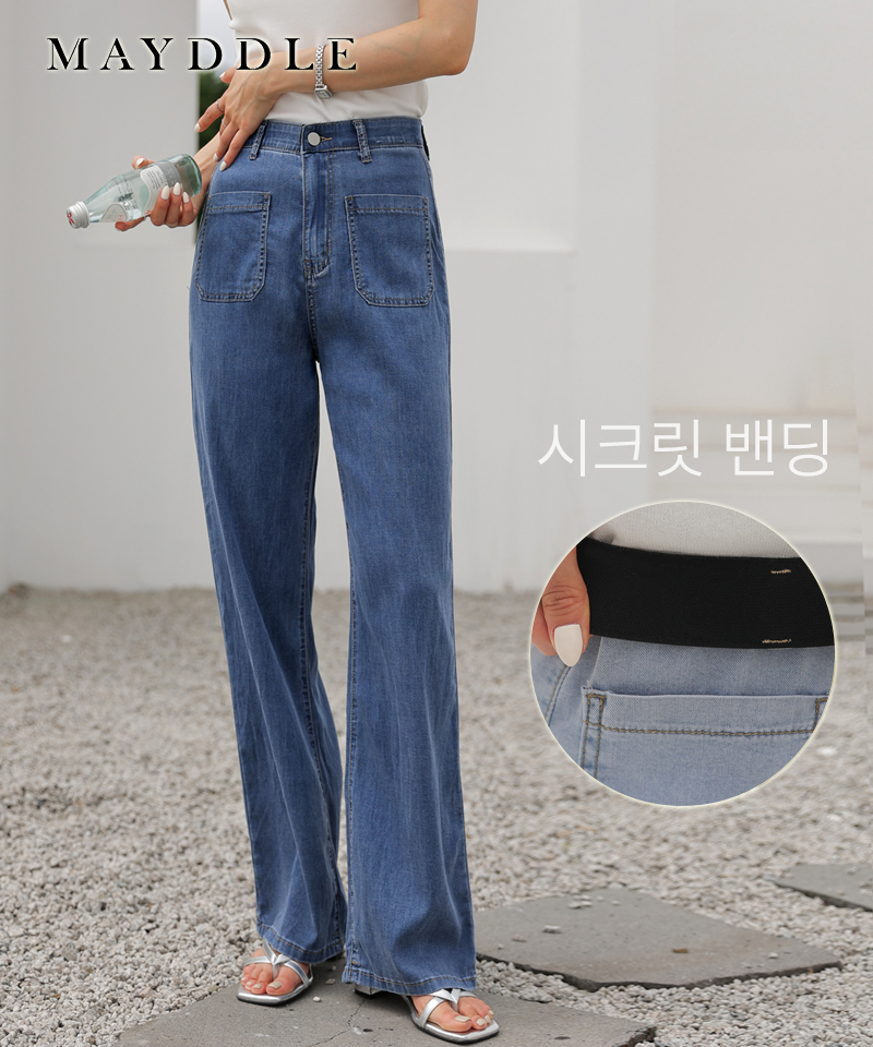 [영상핏]2TYPE 쿨리오셀 포켓 와이드데님팬츠 / 가벼운 텐션 스판 신축성 허리밴딩 롱기장 숏기장 키큰녀 키작녀 여름 쿨링시원한 아이스 청바지 진청 연청 빅사이즈 휴가 휴양지