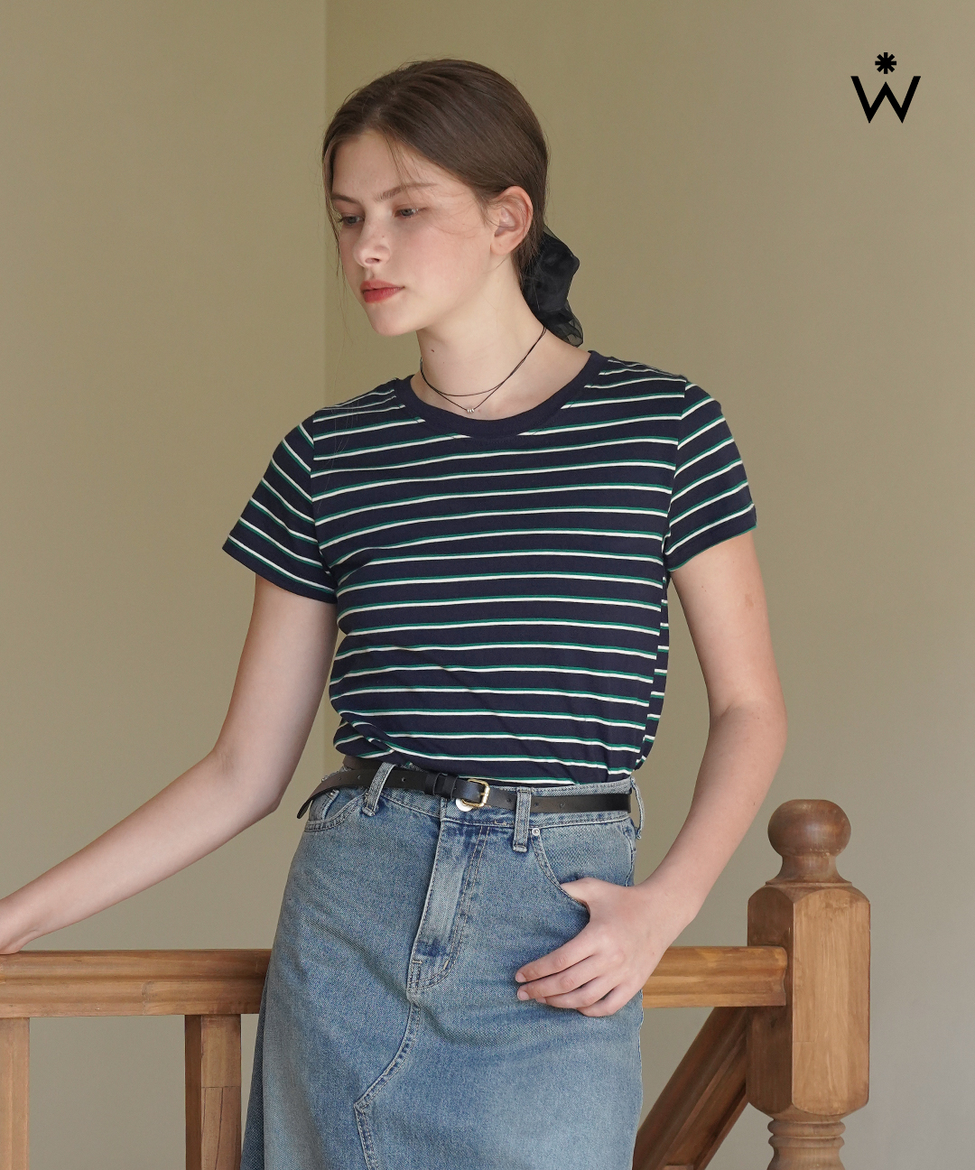 데일리 라운드넥 스트라이프 반팔 티셔츠 (WIBBTS019)