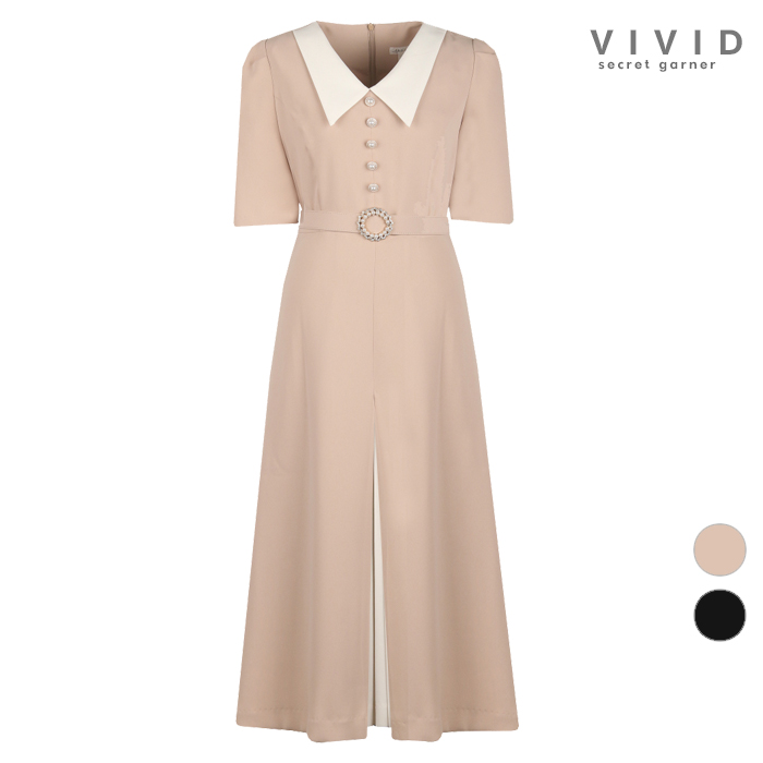 여성 카라배색 여름 반팔 벨티드 원피스