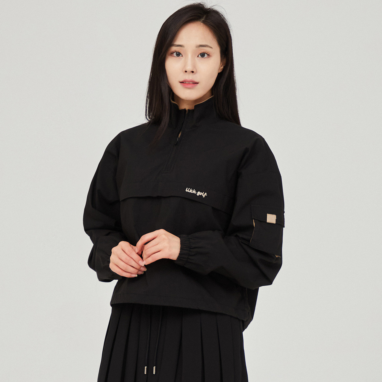 반집업 배색 아노락 아우터 (블랙)_L4A1-JP05C