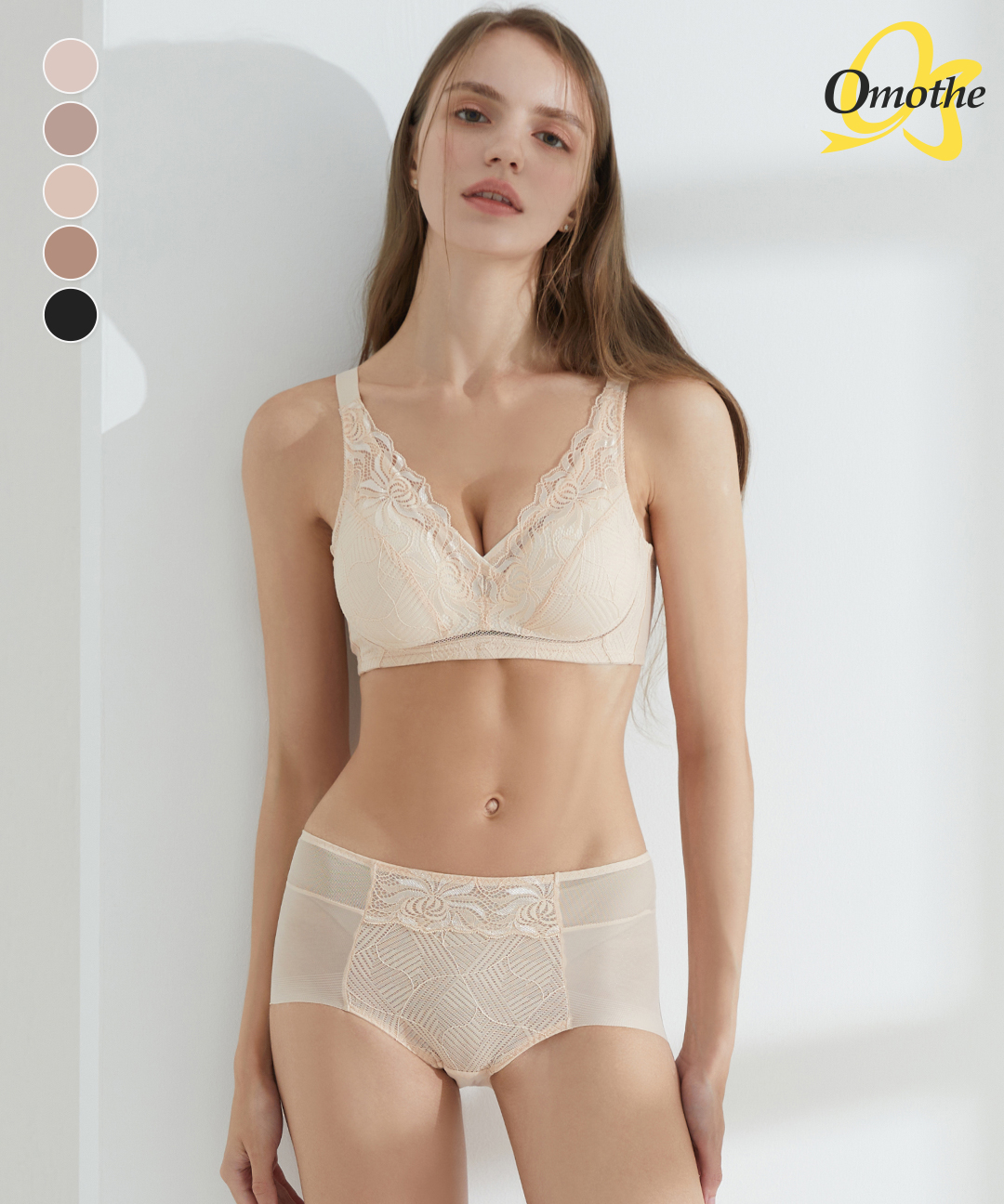 오모떼 빅사이즈 ABCDE컵 프리미엄 텐셀 풀커버 노와이어 브라팬티 2종세트/택일
