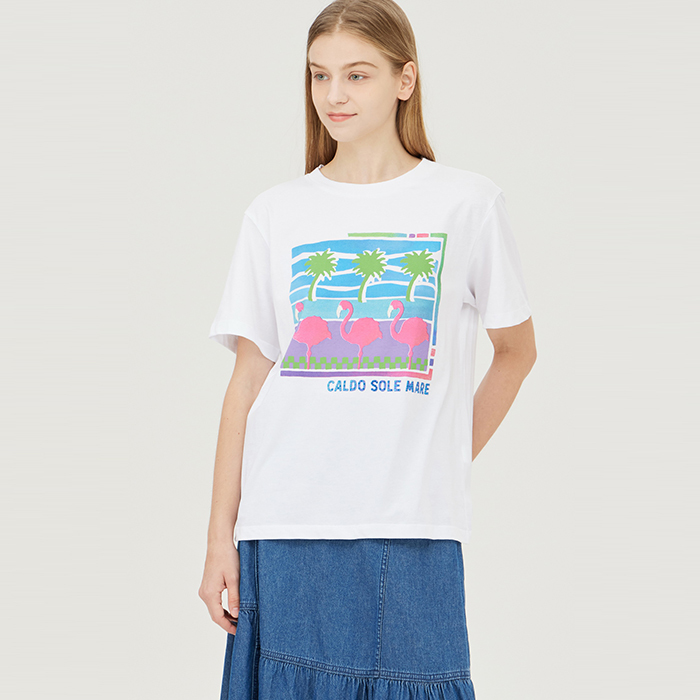 [베네통]프린트 비딩 티셔츠_BATS03441WH