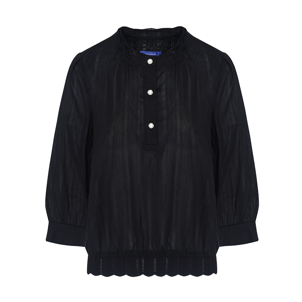 블랙 프릴넥 진주 포인트 블라우스_OHCWBL103