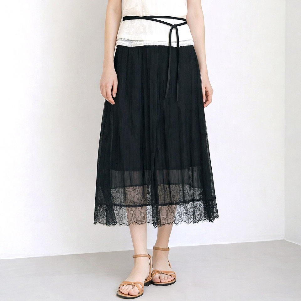 (아날도바시니) 밑단 레이스 플리츠 스커트 (AV05SK70C)