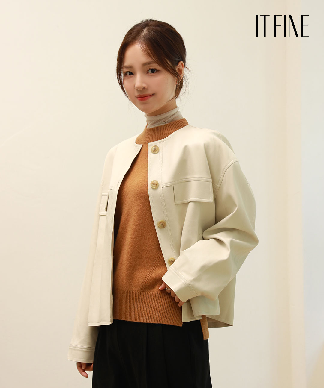 [잇파인] 라운드넥 레더 자켓(3컬러)_P24WJK003
