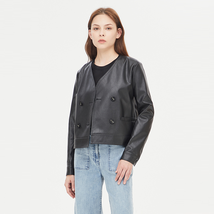 [시슬리]노카라 페이크 레더 자켓_SALEE2411BK