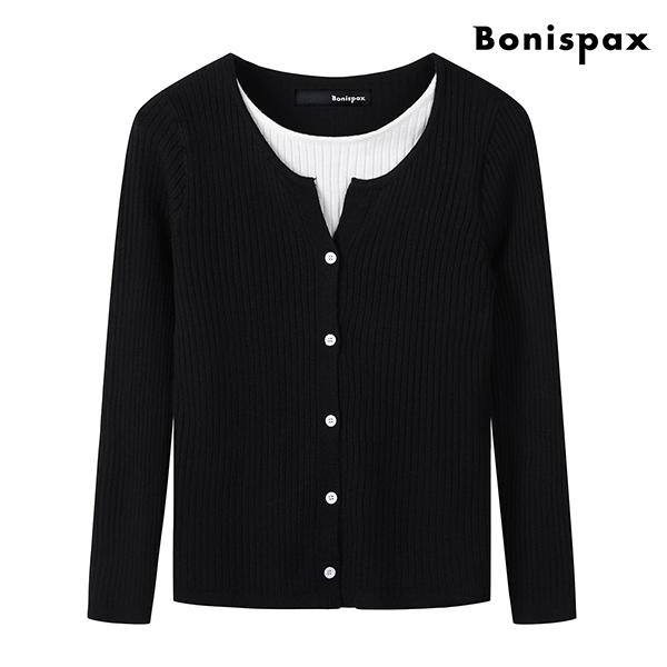 [주말한정 쿠폰] 데일리 카라 트임 배색 버튼 긴팔 니트 (XO3KT008L0)