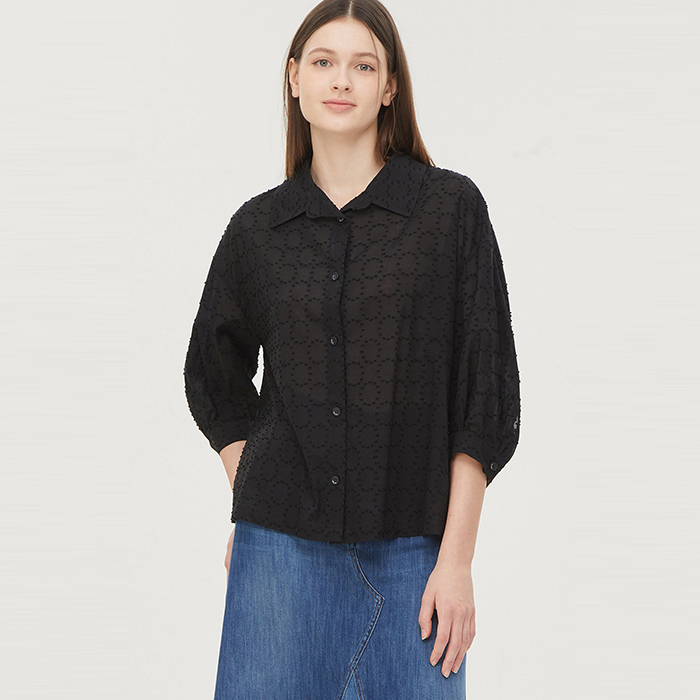 [베네통]트로이 니트 배색 블라우스_BABL03441BK