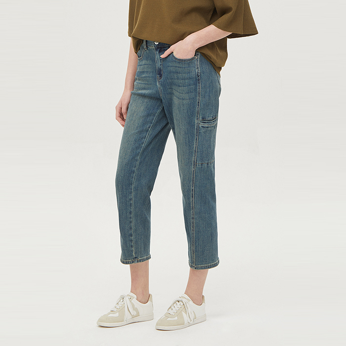 [베네통]백밴딩 절개 배기 데님 팬츠_BADP05441GN