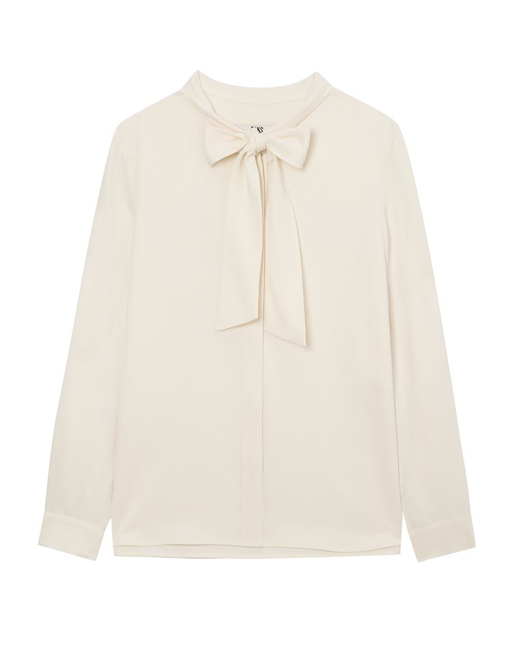 [24FW 닥스 여성]크림 솔리드 실크 타이 블라우스_DLBL4D805CR