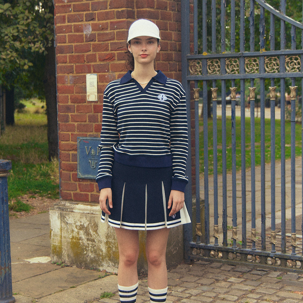 핀 스트라이프 노치넥 스웨트셔츠 (네이비)
